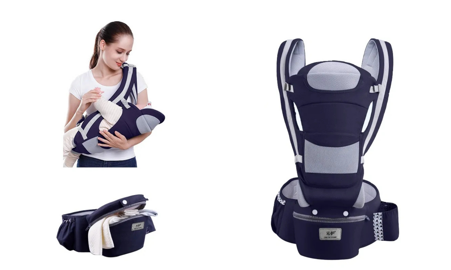This front carrier safely and comfortably carries babies up to 4 years old in multiple positions, with features for both parent and child comfort.